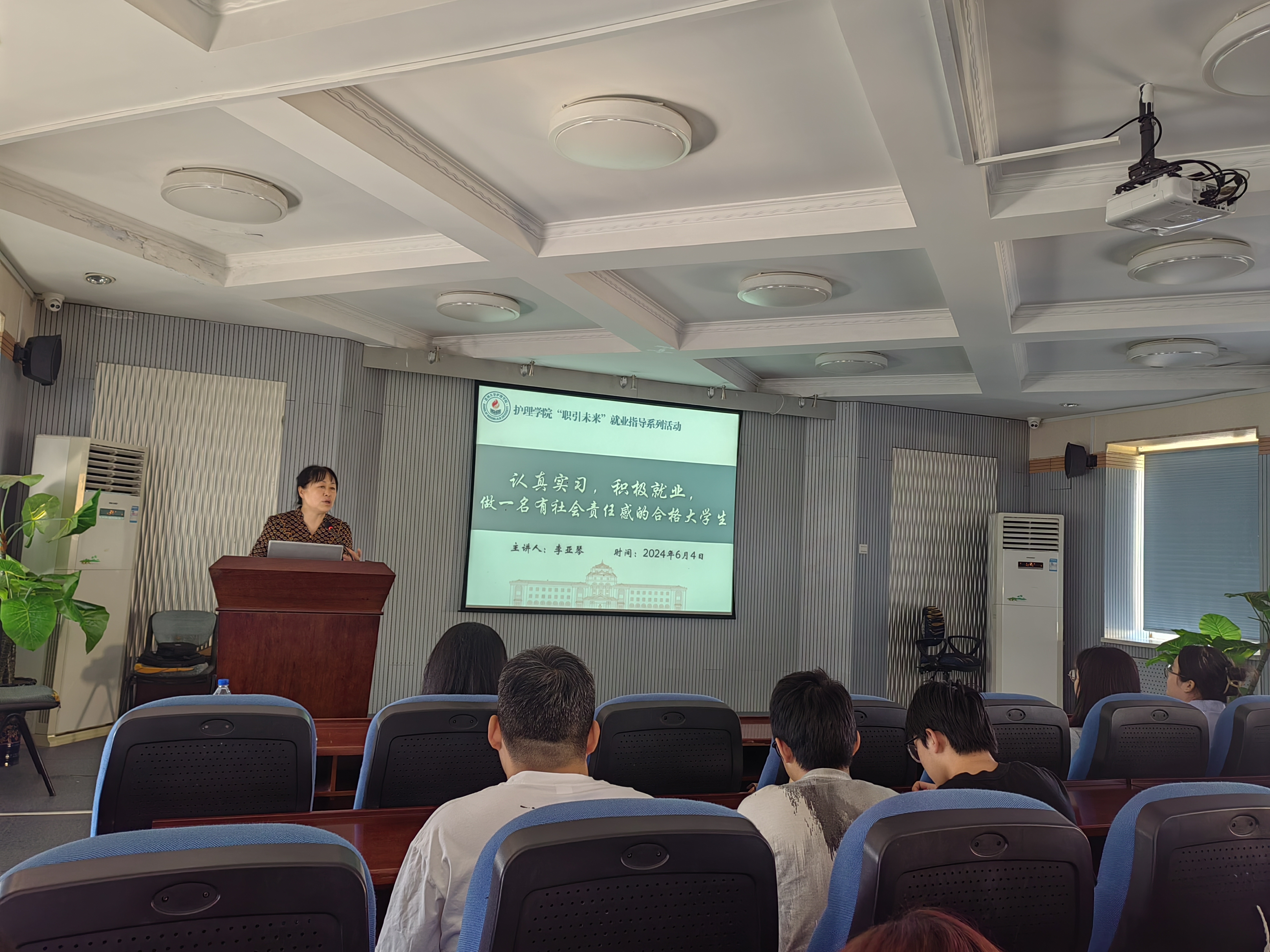 在就业指导方面,李亚琴老师结合以往毕业生在保研、考研、选调生、考公、部队文职、出国留学、临床就业等生动的案例,从了解就业形势和政策、做好求职择业准备、掌握就业方法和技巧等方面为学生提供了全面的建议。针对当前出现的慢就业、不就业现象,她从“就业是事关家庭、学校、社会的大事,是国家大事”层面,希望大家克服就业过程中遇到的困难和挫折,充分利用社会支持系统,提前做好职业规划,积极就业,做一名有社会责任感的合格大学生,为社会做出积极贡献。