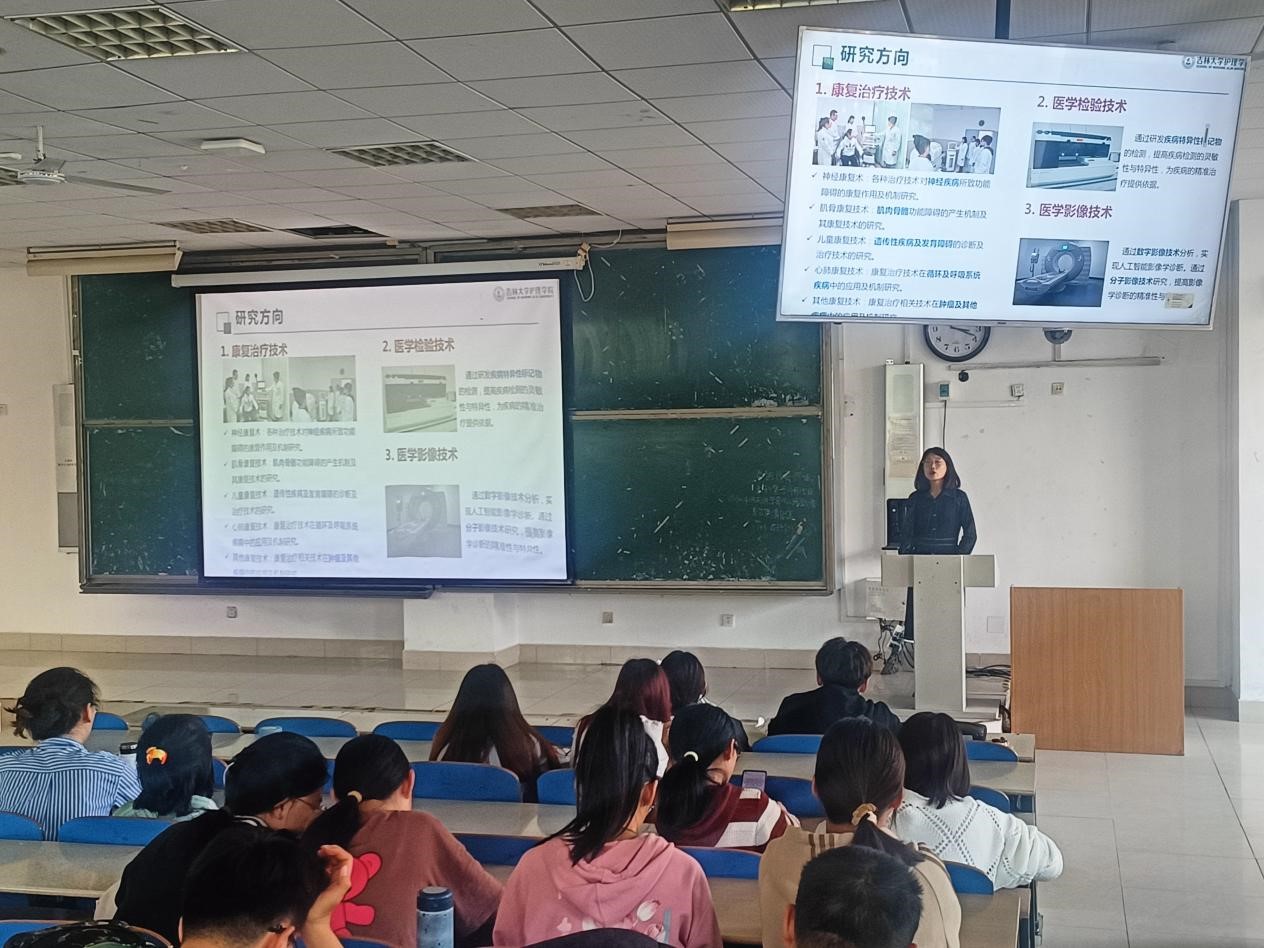 4月20日,梁冰和张爽来到滨州医学院医学影像学院和特殊教育与康复学院进行招生宣讲,现场与学生进行交流,针对学生关心的笔试、面试、夏令营、就业等问题一一作答。