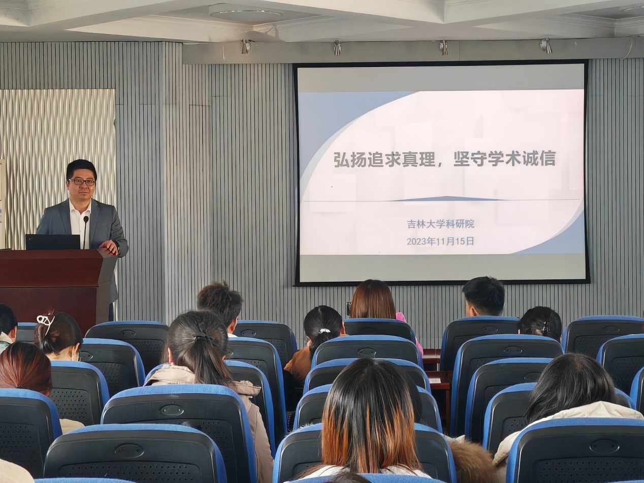 师生做《弘扬追求真理,坚守学术诚信》专题报告。本次报告会由李峰副院长主持,科研院科技管理办公室学术诚信科邵琳科长、闫兵老师出席会议,学院师生近70余人参加会议。