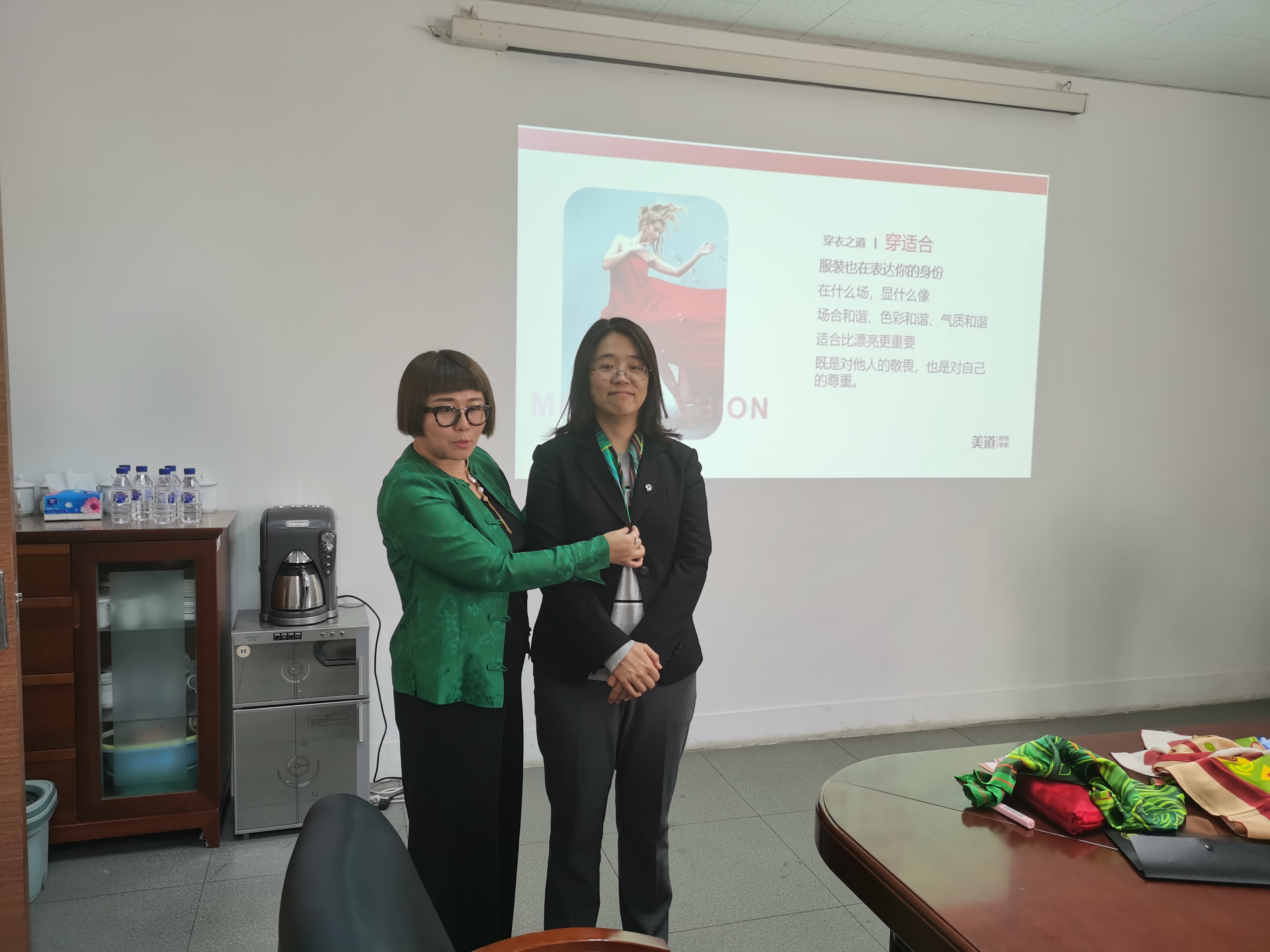 讲座中,聂老师从穿衣之道的五重境界展开讲述,向参加讲座的老师们分享了色彩搭配、款式搭配以及根据身材、脸型等特点选择合适的衣物等技巧和理论知识,并提出了提升魅力的四个维度:形象力、幸福力、创造力、财富力,鼓励参会老师们勇于打破内心束缚,尝试多样风格,让着装成为实现蔽体和保暖功能外既能愉人又能愉己的美学享受。聂老师还现场邀请了参会老师作为模特,从她们的肤色、气质等方面为老师们进行了色彩和服饰的搭配,令大家受益匪浅。