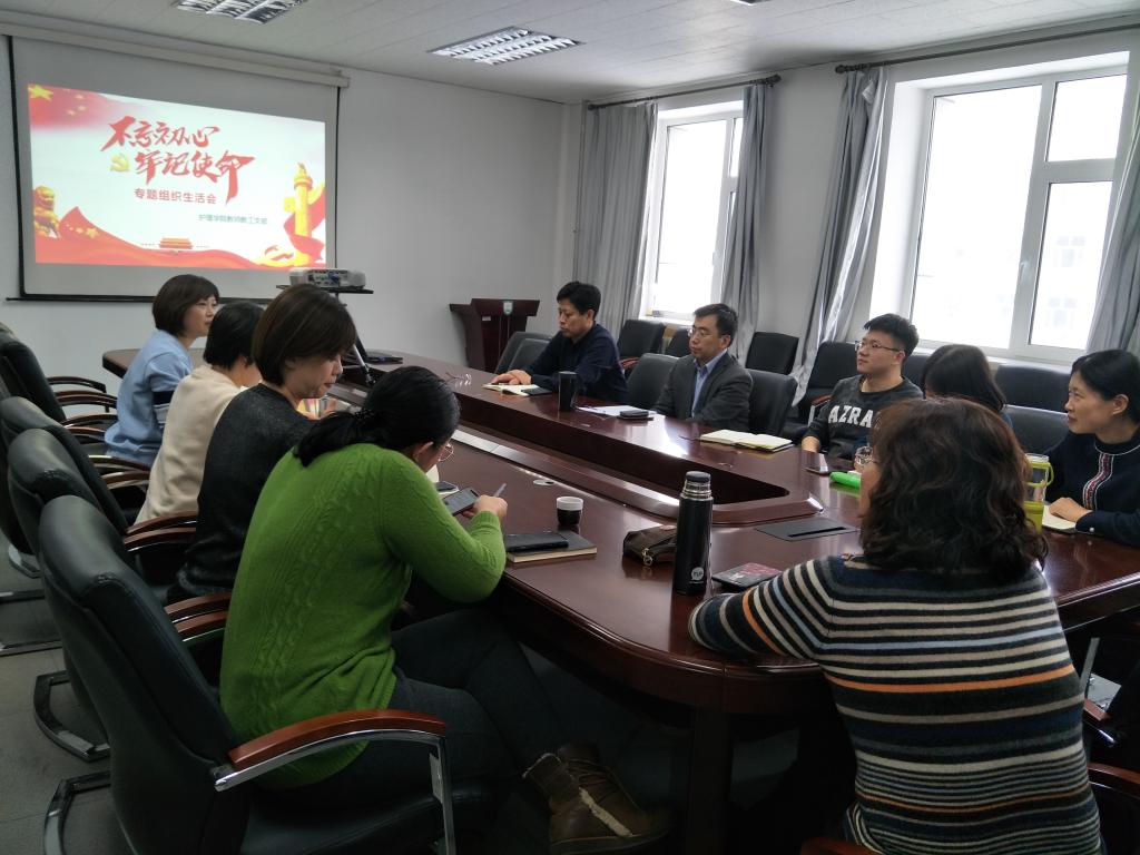 教师党支部在三楼会议室召开了“不忘初心、牢记使命”专题组织生活会。会议由党支部书记李悦玮主持,学院副院长同志以普通党员身份参加组织生活会。