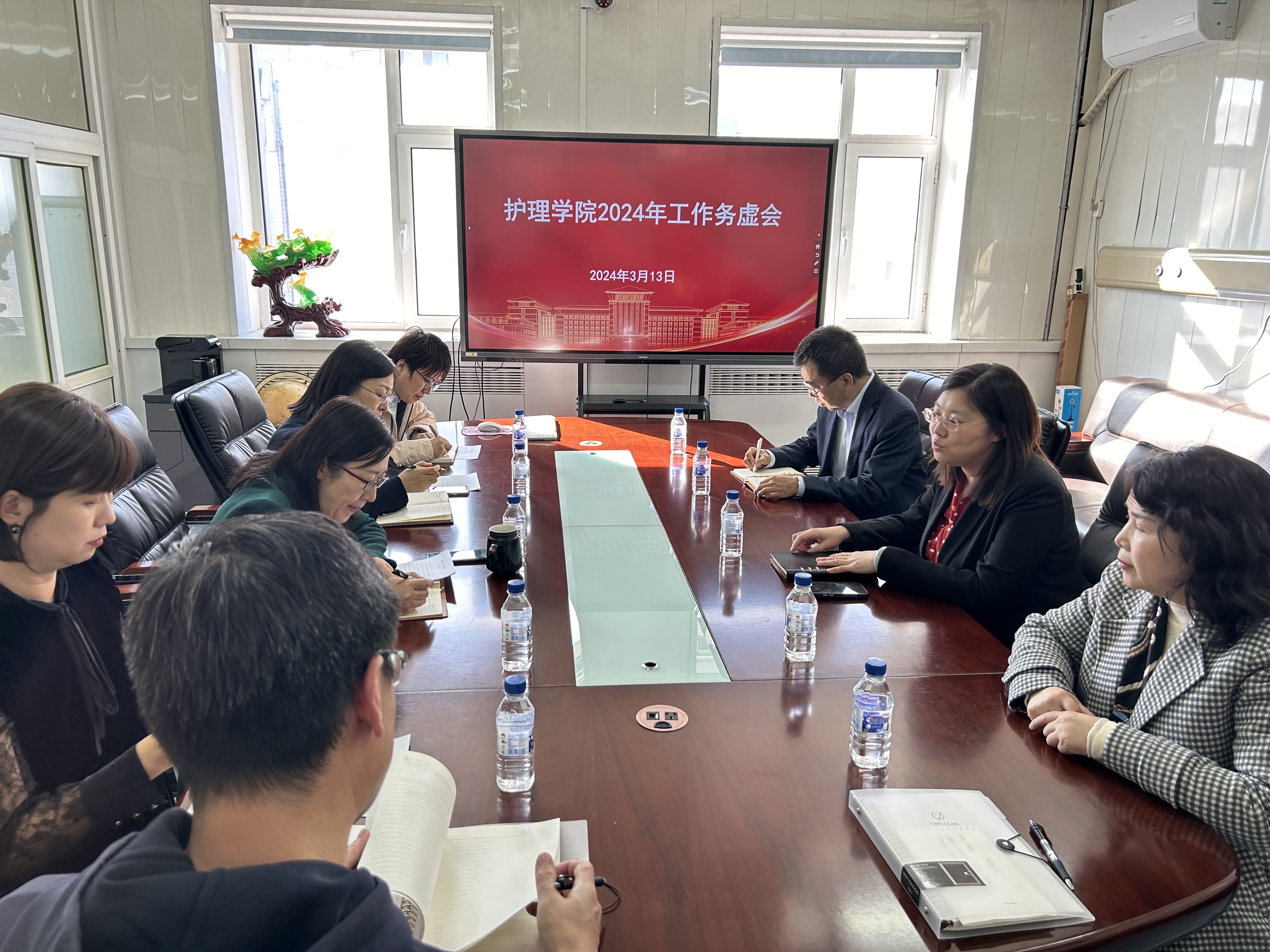 副院长李峰在分析总结2023年工作完成情况的基础上,紧紧围绕学校事业发展规划,对2024年加强和提升专业建设和学科建设两个方面提出展望。专业建设上,全院上下要同心同力,完善人才培养的制度体系,提升师资队伍的能力水平,积极迎接护理和医学技术两个专业的专业建设审核性评估和稳固国家一流专业建设点。在学科建设上,面对新一轮学科评估,要夯实基础、迎难而上,找到解决问题的坐标和方向。要通过加强国际合作,拓宽人才引进的渠道和视野,促进人才引进工作落地,实现突破。通过国内校际间交流合作,通过与临床的协同发展,促进科学研究水平的进一步提升。通过学科交叉,通过校企合作,促进科研成果转化,孵育国家级和省级重点项目;同时与企事业单位的合作,扩大社会服务工作的覆盖面,造福地方,服务社会。