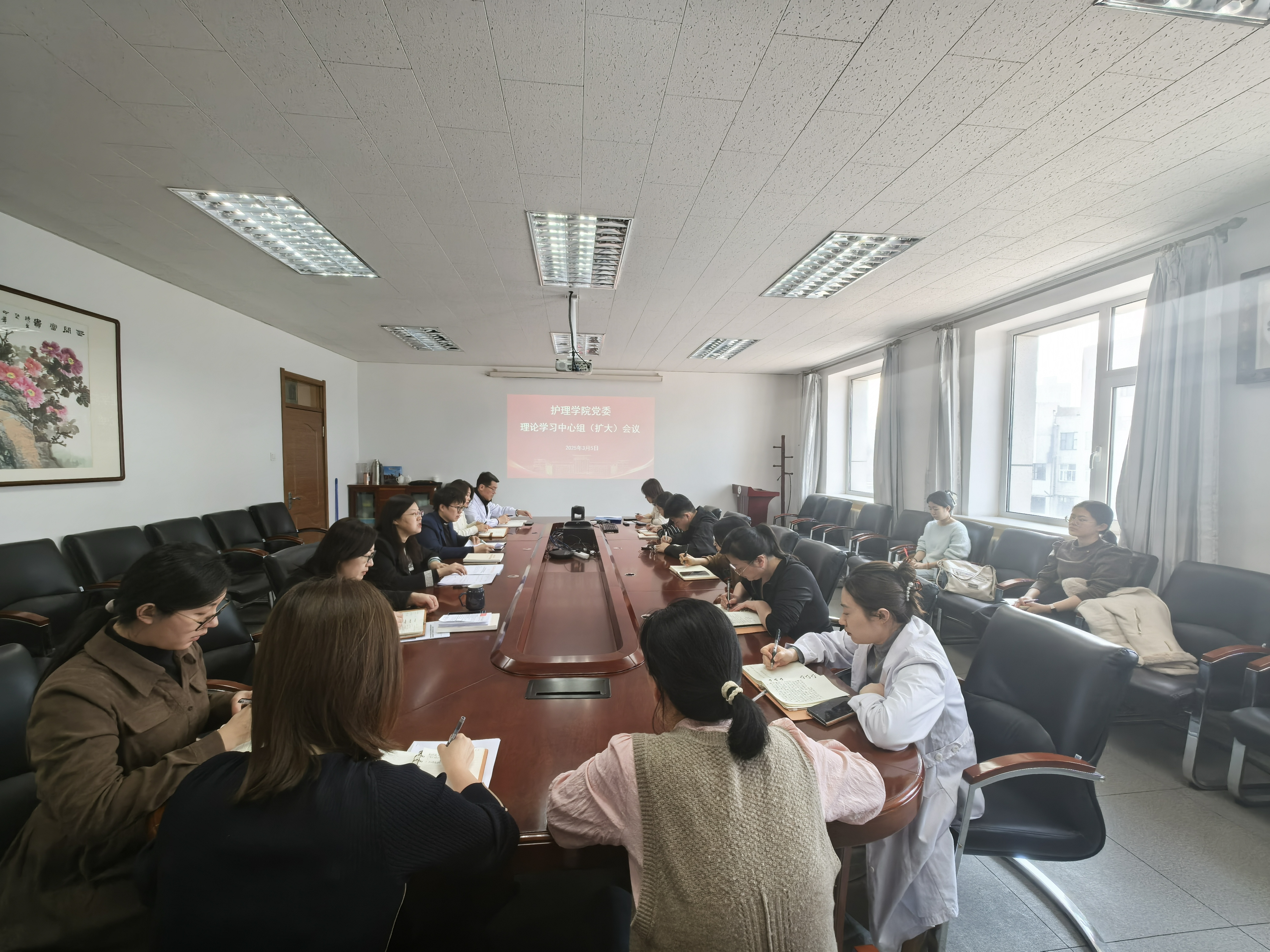 召开党委理论学习中心组(扩大)会议,深入学习习近平总书记重要讲话精神,传达2025年度学校工作会议精神。会议由院党委书记韩月波主持,学院领导班子、党委委员、纪委委员、院长助理、三委主任、党支部书记和行政科室人员参加学习。