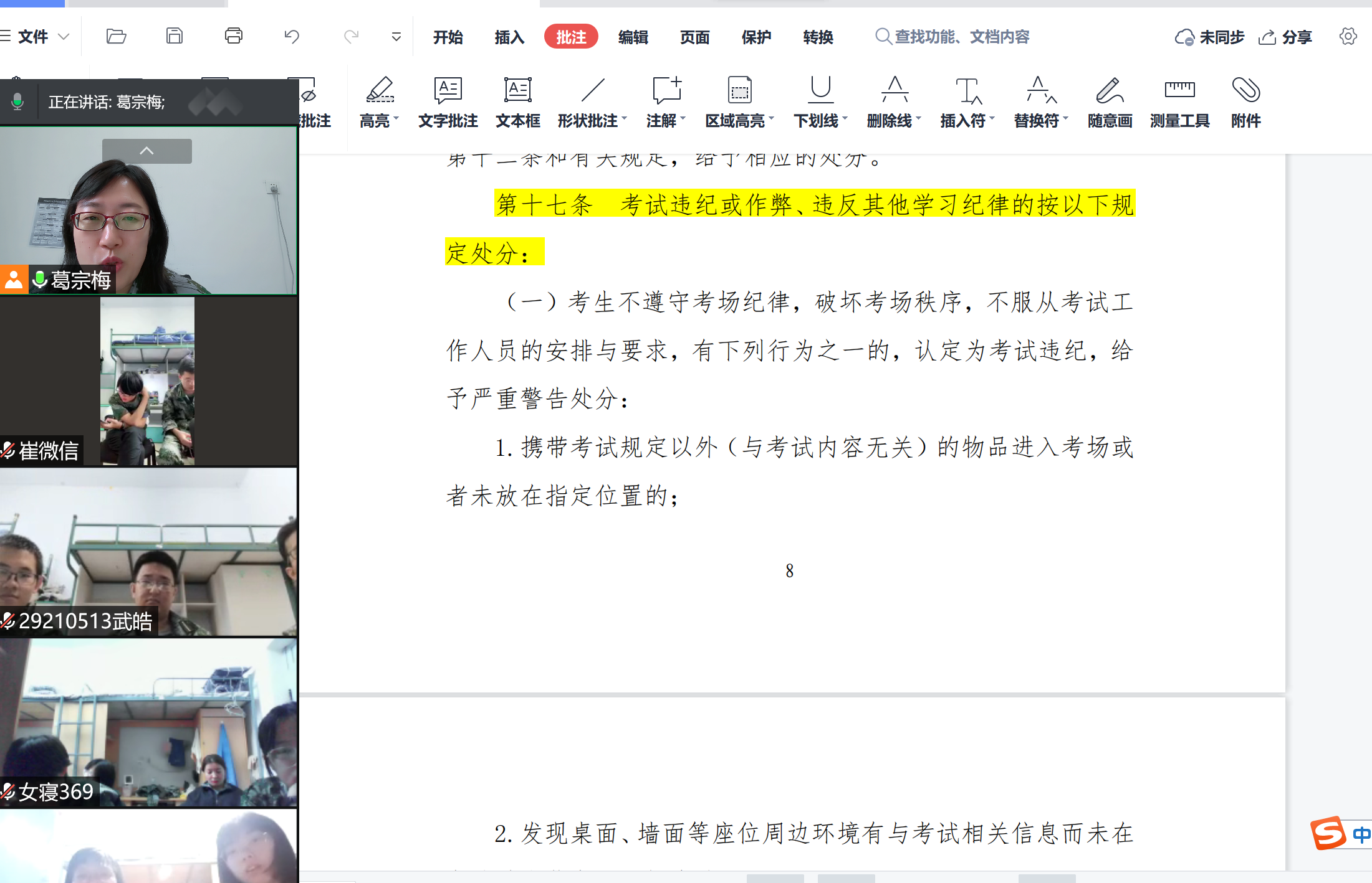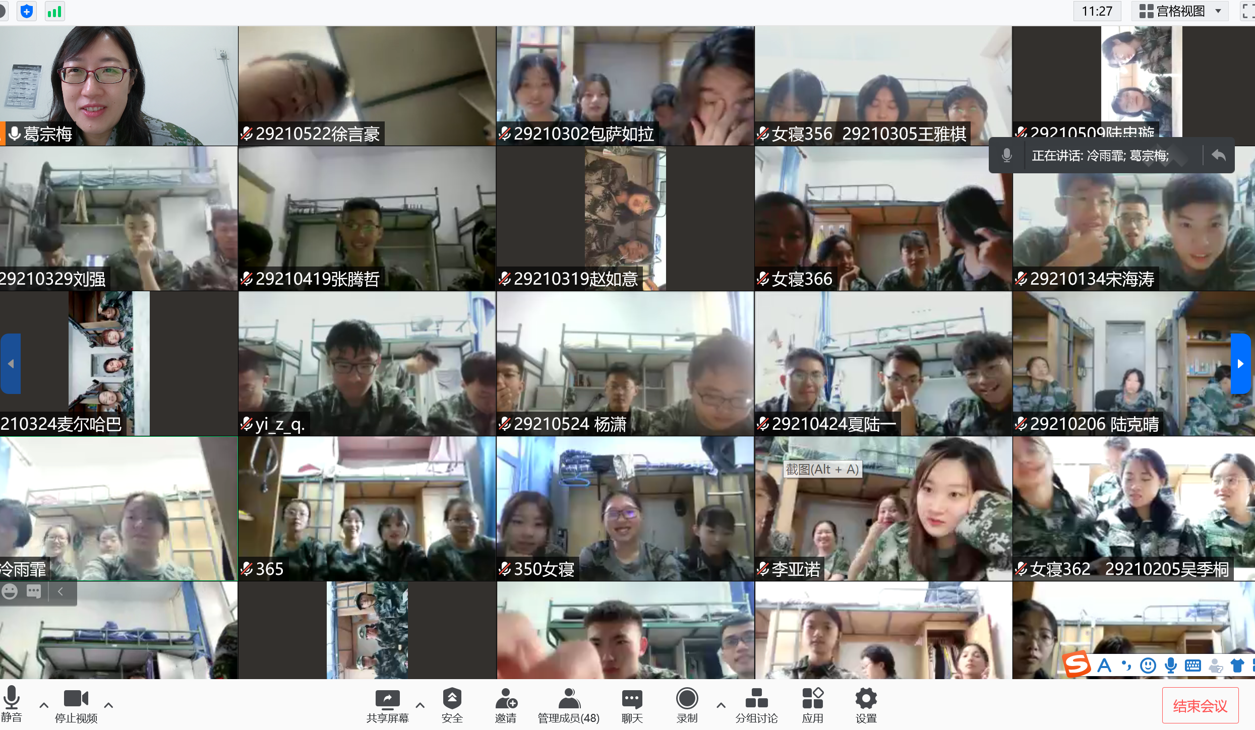 党委副书记兼副院长、2021级新生辅导员葛宗梅通过线上会议方式主持召开了2021级新生年级大会,开展新生入学教育。2021级全体新生参加中。