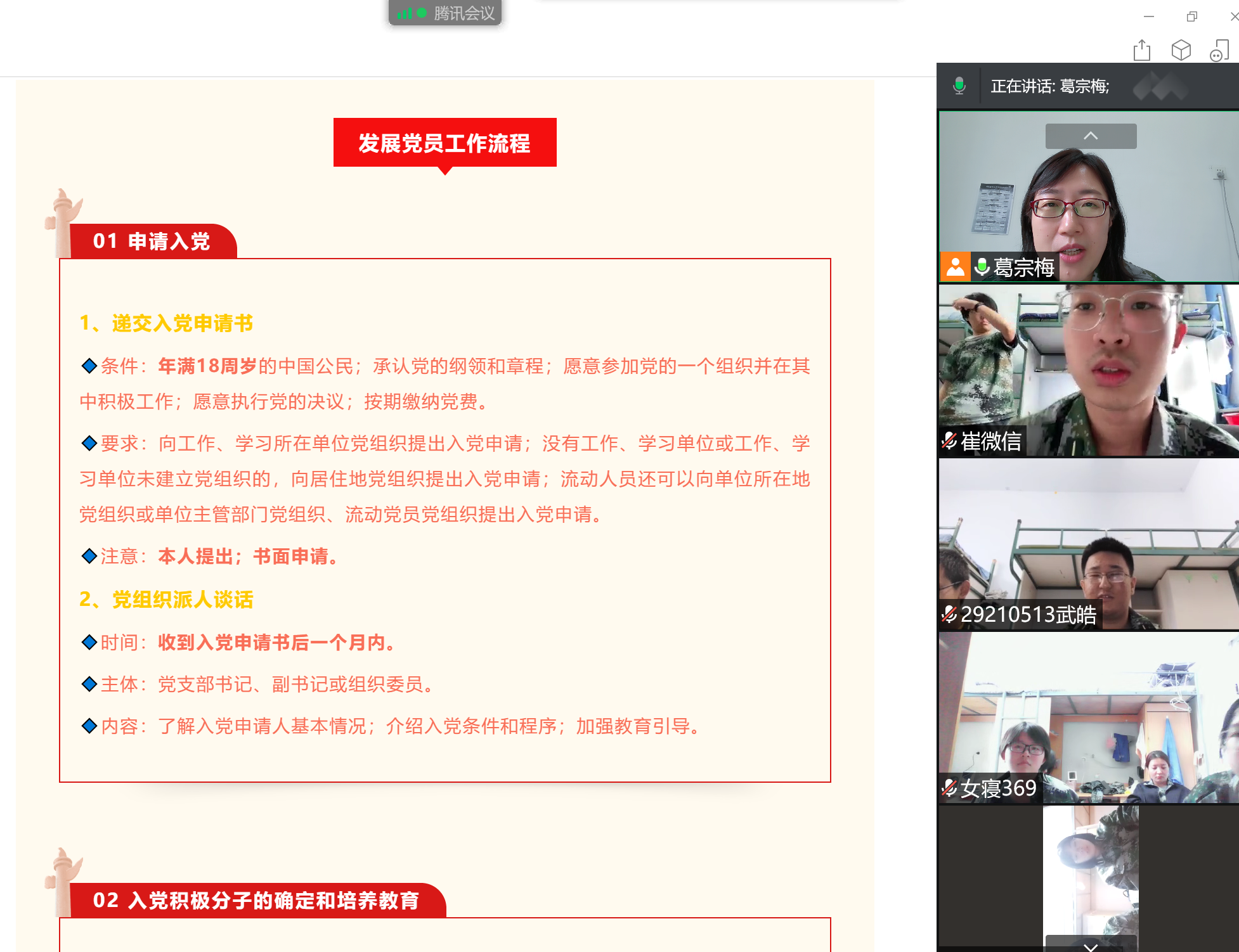 会上,葛老师还为同学们解读发展党员的工作流程,做好新生入党启蒙教育,做到早启发、早引导、早发现、早培养,提高新生同学的政治思想觉悟,激发新生对党的信仰和追求,