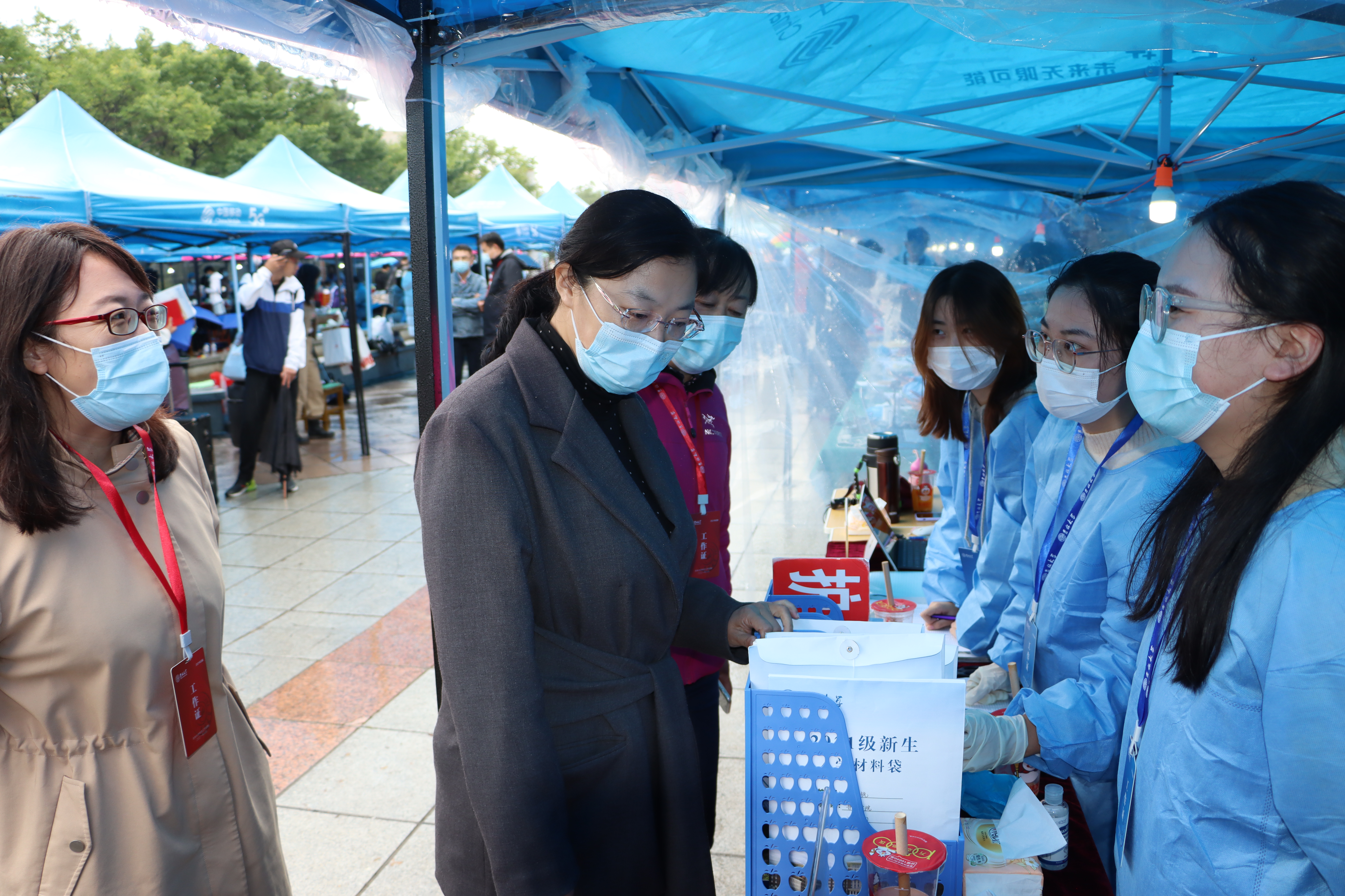 在中心校区五月花广场喜迎2021级新生,热情接待来自全国各地的新同学。
