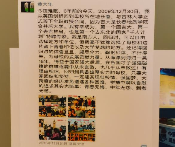 在纪念馆中,我们看到了黄大年同志写下的入党申请书,“人的生命相对历史的长河不过是短暂的一现,随波逐流只能是枉自一生,若能做一朵小小的浪花奔腾,呼啸加入献身者的滚滚洪流中,推动人类历史向前发展,我觉得这才是一生中最值得骄傲和自豪的事情”。在他心里,奉献国家就是最值得骄傲的事情,服务人民就是最好归宿。黄大年同志的办公室中,密密麻麻地记录着他的日程。回国后的他一直在与时间赛跑,把每一分每一秒都奉献到了科研和教育事业中。黄大年同志心中有祖国,有学校,有学生,却没有自己。他夜以继日地工作,孜孜不倦地将自己的知识传授给学生。他的办公室灯光永远亮至深夜,被称为福利姬